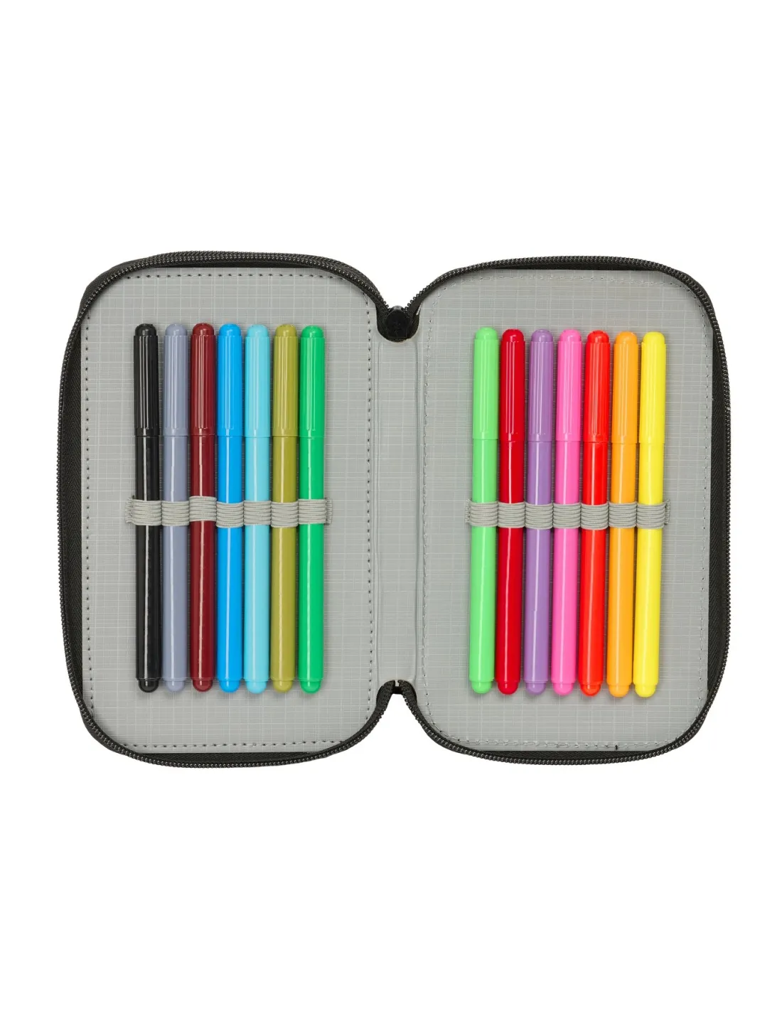 Descubre el Plumier Triple One Piece, la elección perfecta para los amantes del emblemático anime. Este estuche de primera calidad cuenta con 37 piezas esenciales organizadas en tres prácticos compartimentos.