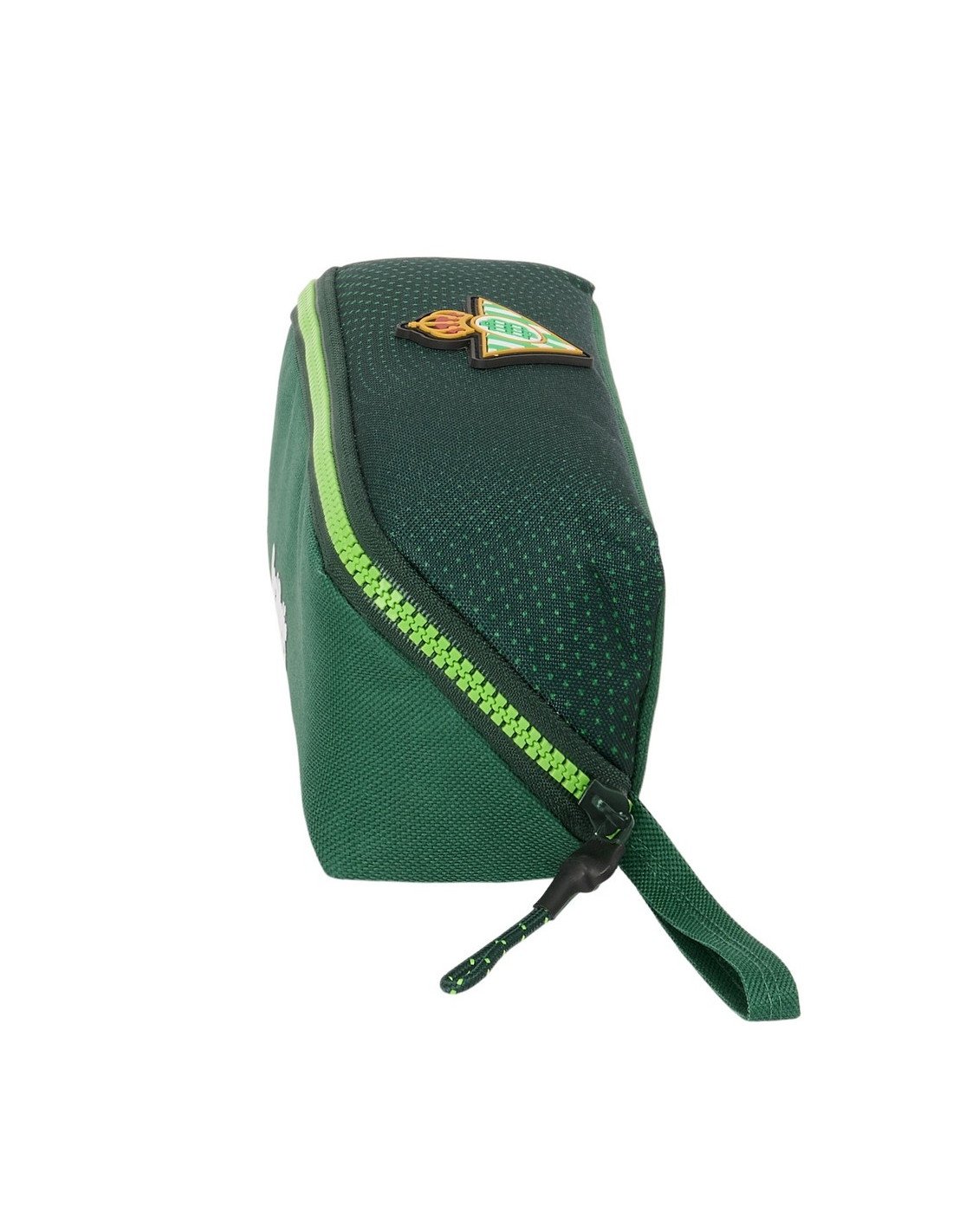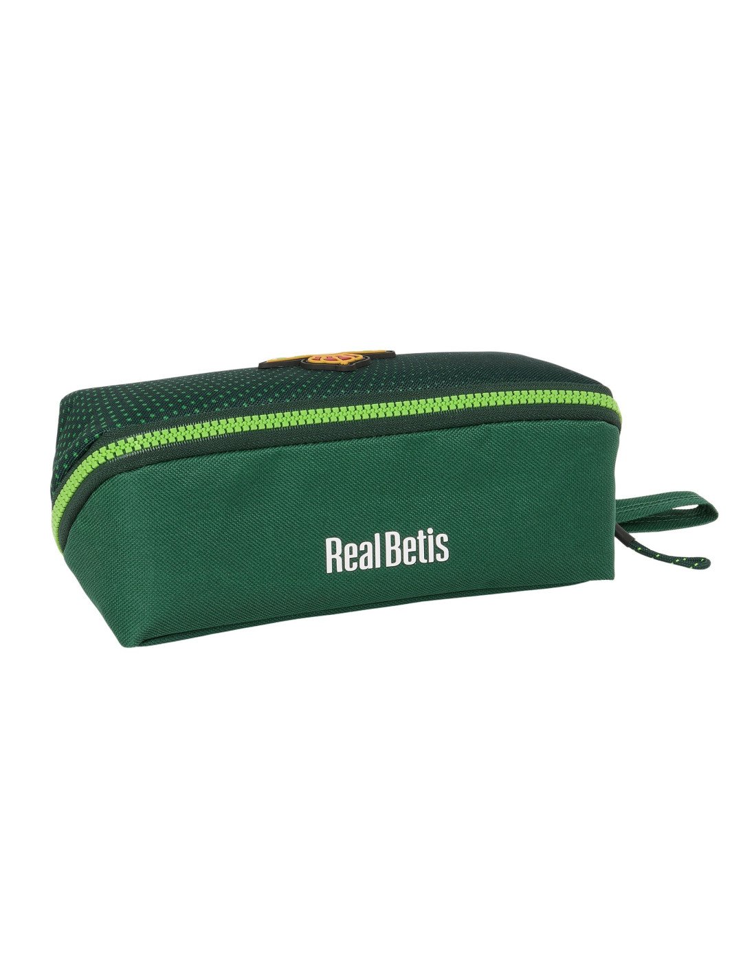 Equipada con un asa de mano en la parte lateral, es tan fácil de llevar como funcional. Al ser un producto con Licencia Oficial del Real Betis Balompié, te asegura la máxima calidad y autenticidad. Añade este conveniente portatodo a tu colección y lleva contigo el espíritu verdiblanco donde quiera que vayas.