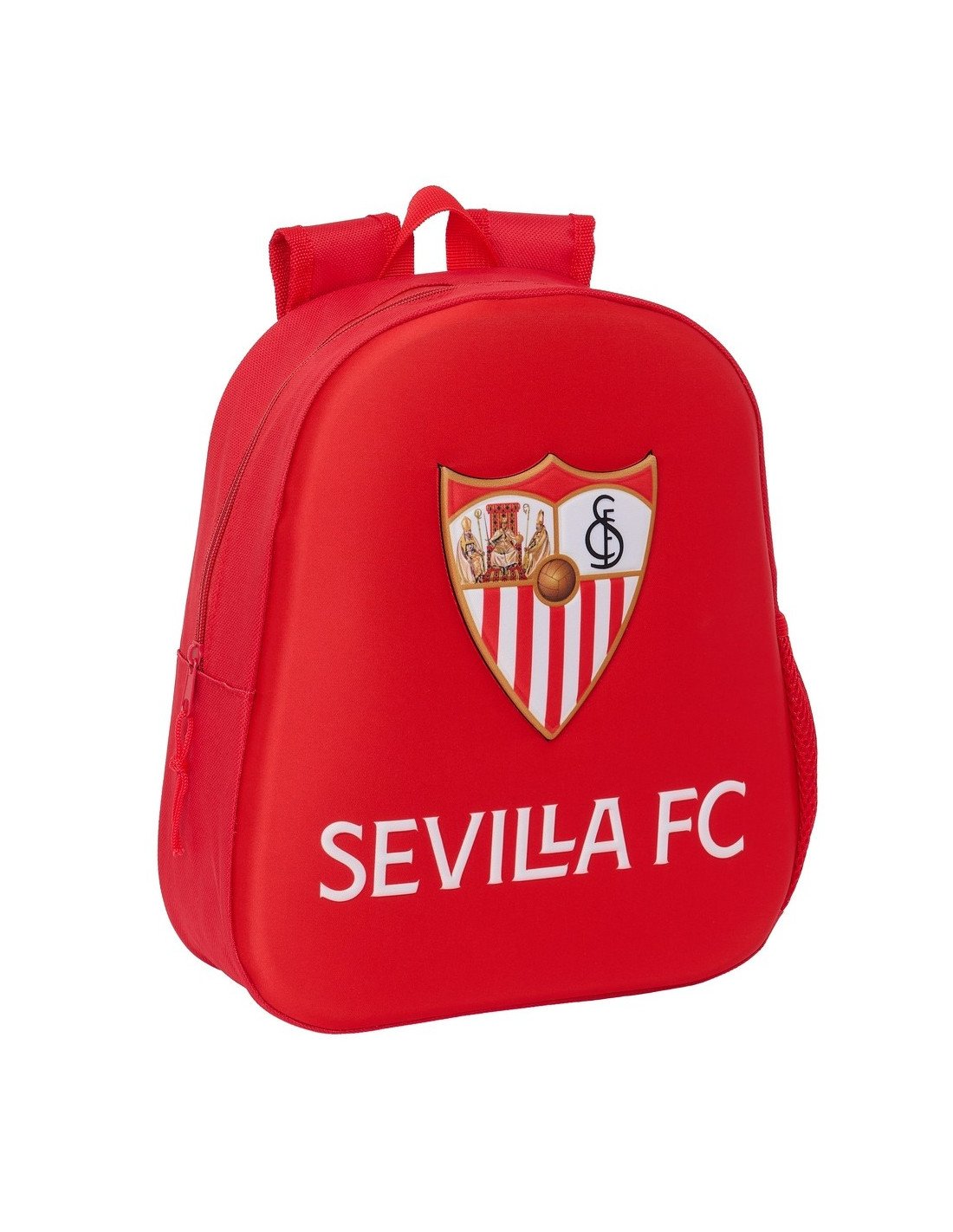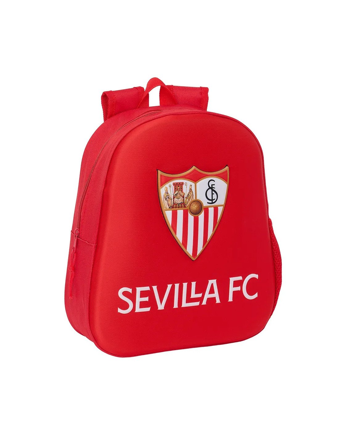 Sevilla F.C.Diseño frontal en 3D termoconformado. Bolsillo lateral portabotellas. Hombreras acolchadas. Asa de mano en la parte superior.
