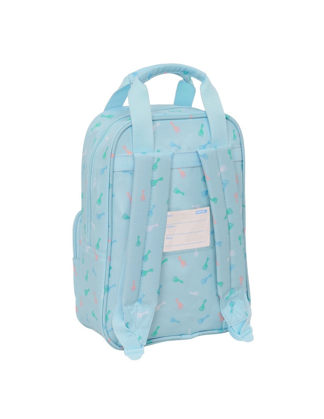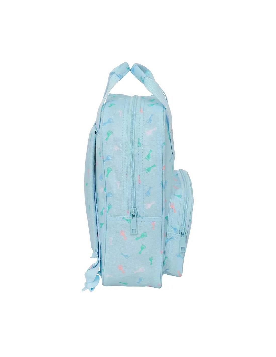 Interior forrado de alumínio para mantener frio-calor. Asa de mano en la parte lateral. Compartimento con cremallera. Material reciclado. Repelente al agua